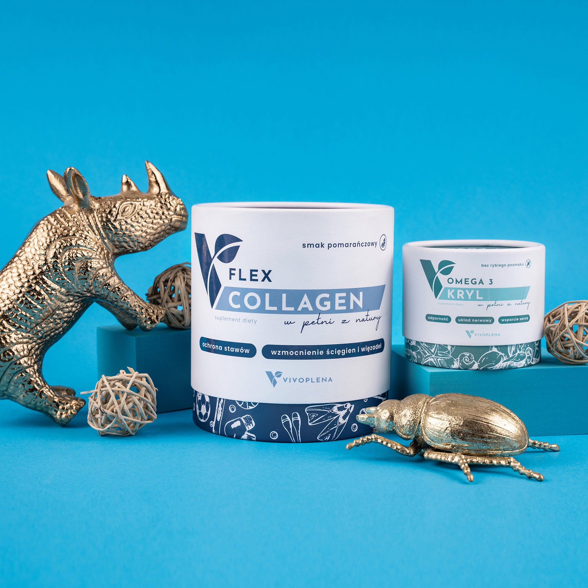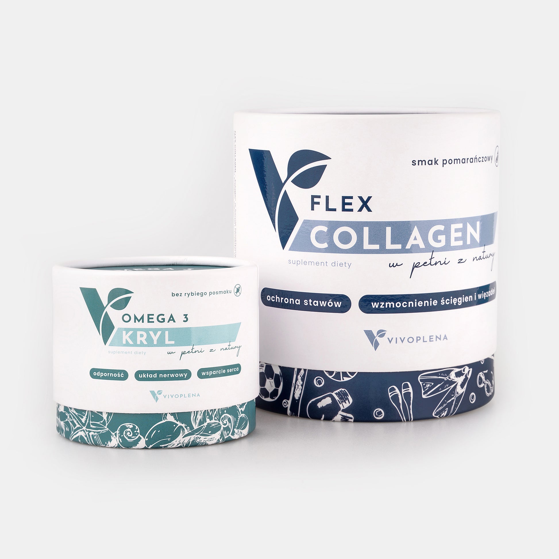 Jeśli prowadzisz aktywny tryb życia, ten zestaw to must-have w Twojej codziennej suplementacji. Połączenie suplementów Flex Collagen oraz Omega 3 Kryl wnosi efekt synergiczny, szczególnie w kontekście wsparcia układu ruchu, zdrowia stawów, więzadeł, chrząstek oraz ogólnej kondycji organizmu. Oba produkty działają na różnych płaszczyznach, wzajemnie się uzupełniając.